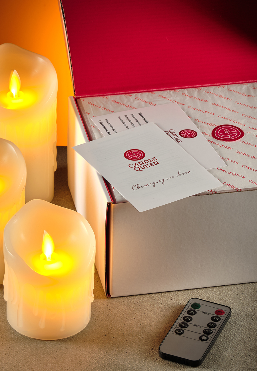 Время работы свечей Candlequeen от комплекта батарей составляет более 200 часов. Батарейки не входят в комплект поставки и приобретаются отдельно.