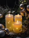 Корпус свечей украшен золотыми прожилками, в которые вмонтированы мерцающие светодиоды, добавляющие ощущение праздника.